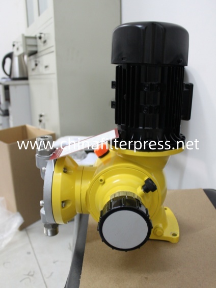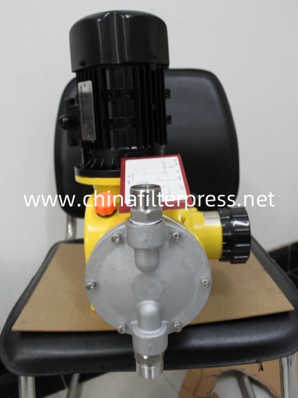 电机经联轴器带动蜗杆并通过蜗轮减速使主轴和偏心轮作回转运动,由偏心轮带动挺杆在导筒内作往复运动。连同膜片,通过单向阀的作用使泵腔内逐渐形成真空,吸入阀打开,吸入液体;当膜片向前死点移动时,此时吸入阀关闭,排出阀打开,液体在膜片的推动下排出。在泵通过调节一定的行程的往复顺还工作形成连续有压力、定量的排放液体。
