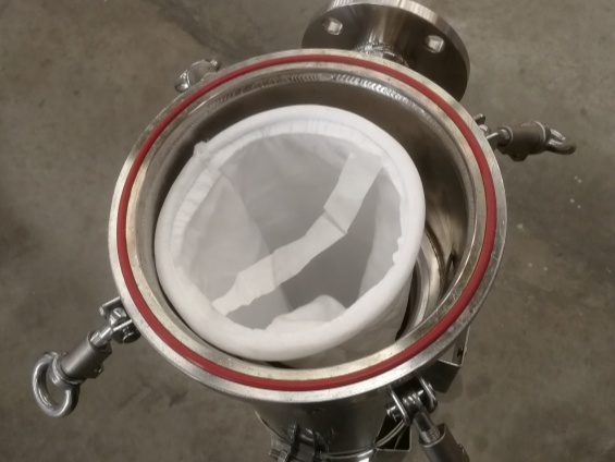 本机操作简单,使用时只需将所需要细度等级的滤袋安装在滤筒内,检查O型密封圈是否完好,然后旋紧滤筒盖环形螺栓,即可投入工作。 泵启动后,过滤机上压力表微微上升,初始压力约0.05MPa左右,随着使用时间的延长,缸内滤渣逐渐增多,当压力达到0.4MPa时,应停机打开筒盖,检查滤机袋留渣情况,可更换滤袋继续使用(滤袋通过清洗一般可重复使用)。过滤机压力一般调在0.1-0.3MPa比较合适,可通过回流管路或泵上回流阀来调节,过滤压力过高会损坏滤袋以及保护网,需格外注意。